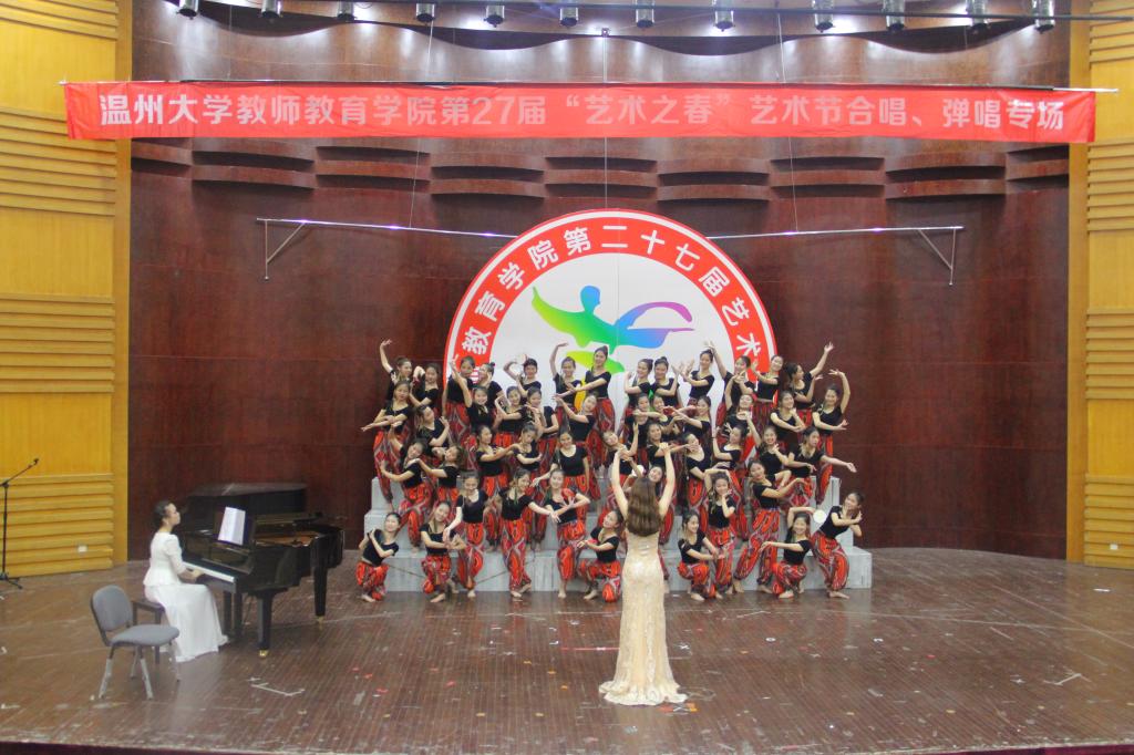 芬芳的五月,校园里鸟语花香,到处都是春的呼唤,到处都洋溢着悦耳的歌声。2017年5月9日晚6:30,温州大学教师成人网站 第二十七届“艺术之春”声乐专场在南校音乐厅拉开序幕。亲临此次比赛的评委老师有教师成人网站 陶陶、翁鲜丽、杨婧、叶熙熙、陈恩清、章伟丹老师。本次声乐专场分为合唱与弹唱两个专场。每个班级的节目都精心准备,精彩缤纷,让我们的双耳聆听了一场声音的盛大晚会。在主持人一段精彩的开场白与评委老师介绍之后,合唱专场比赛正式拉开了序幕。