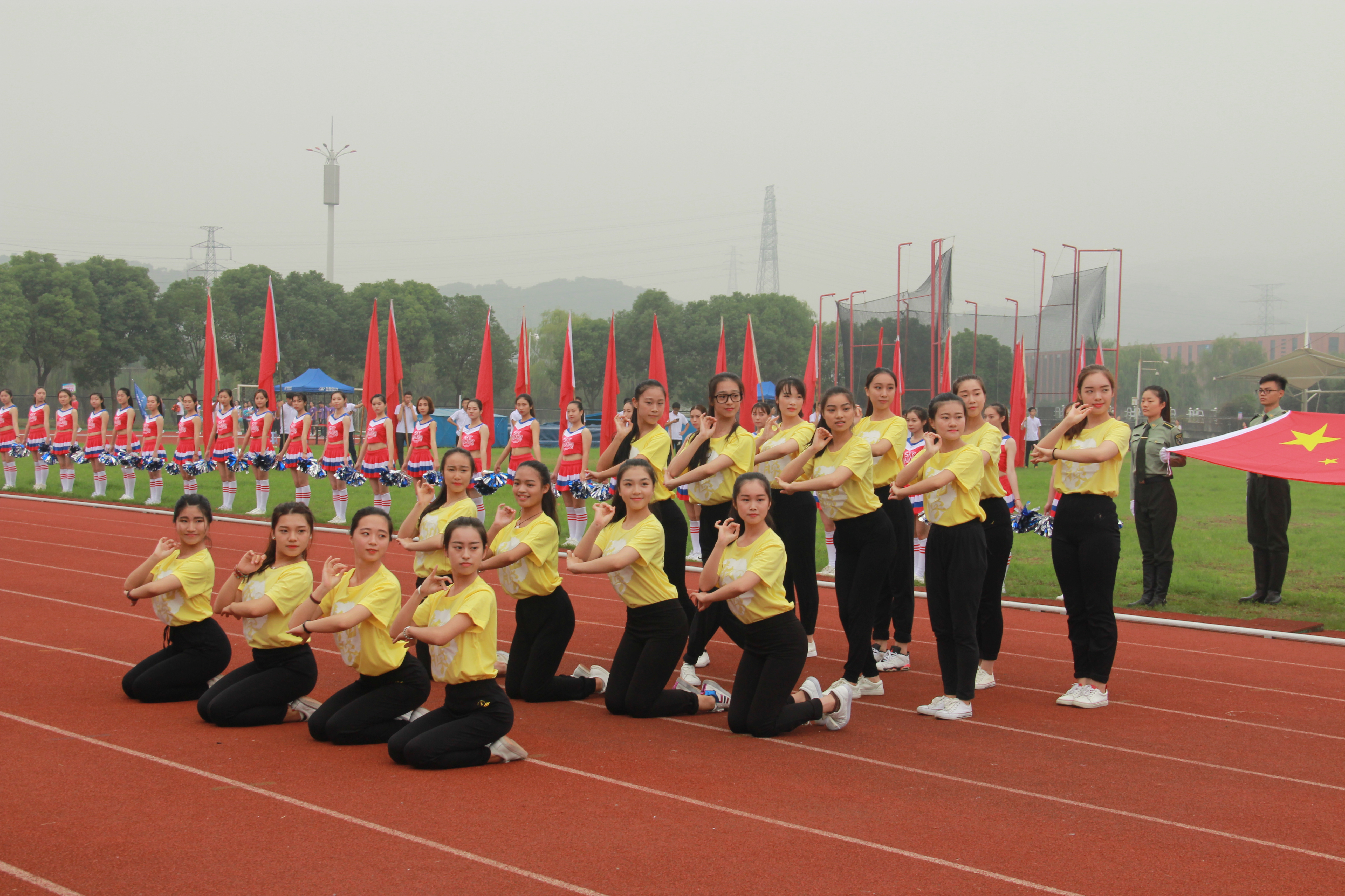 10月27日校运会的开幕式上,彩旗飘飘,欢声雷动。突然间被一群灵巧可爱的鸟儿吸引住了视线,没错,这正是教师成人网站 的方阵,她们统一身着黄色的上衣,身姿舞动,大气高雅,活力四射,尽显成人网站 良好的运动风尚,引得全场一阵欢呼。