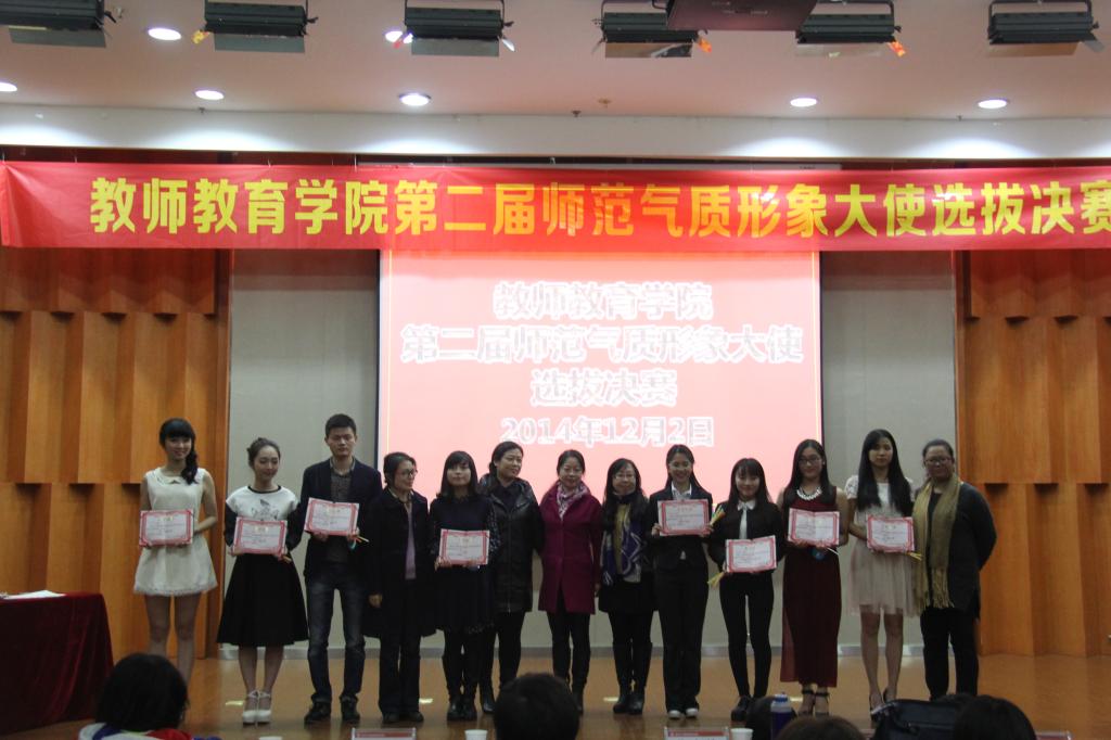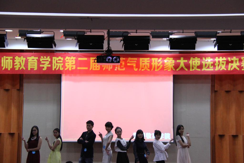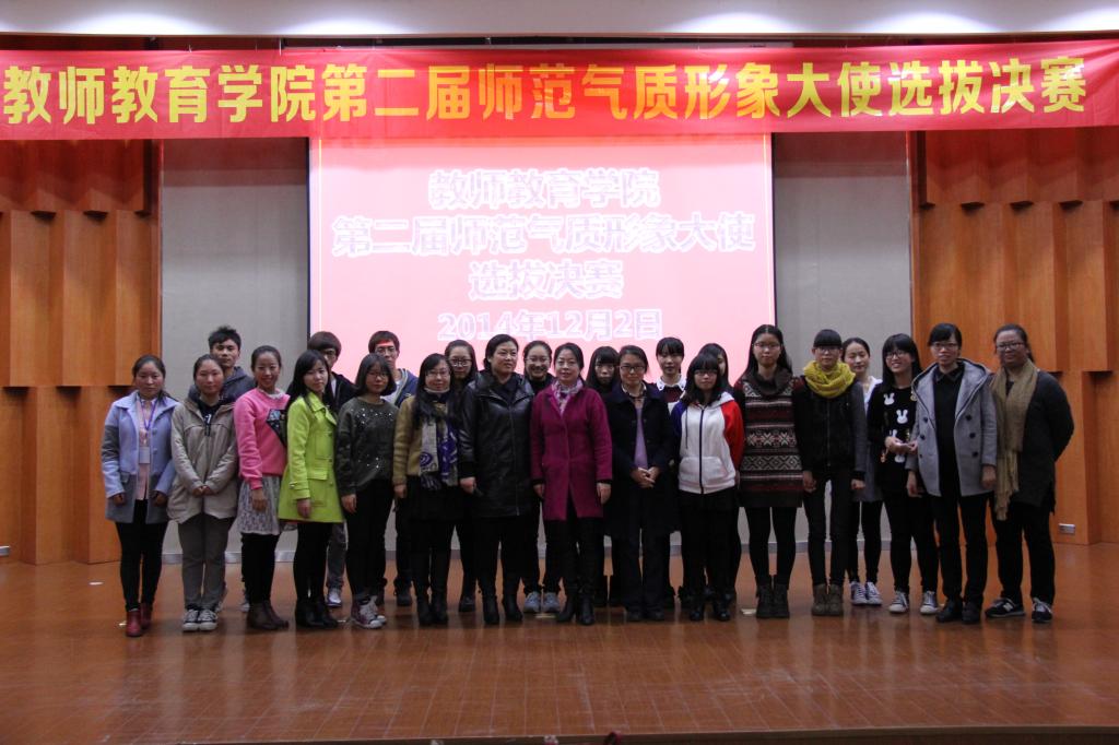 第二届师范气质形象大使选拔决赛在南校雁山厅举行。到场的嘉宾有学院党总支副书记嵇小怡老师,教技系主任张新立老师,小教系书记刘海霞老师,心理系卢佳老师,学前系杨利霞老师,以及来自成人网站