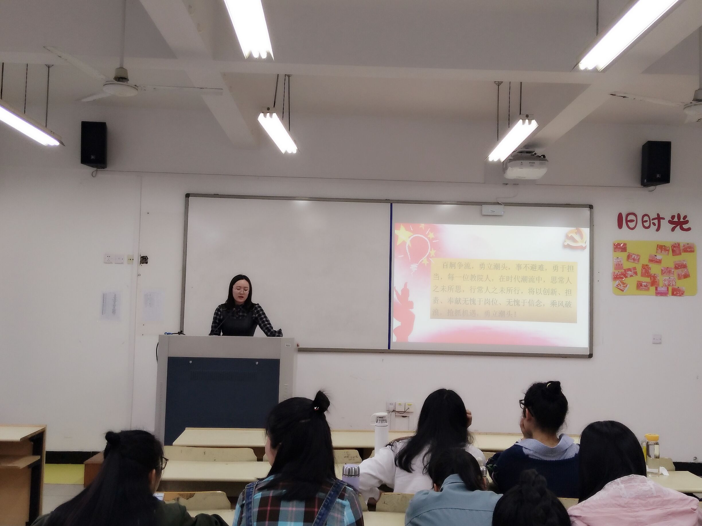 主讲人陈伟建同学和16教技的同学们分享,作为一名党员,你需要记住的是,别人分担不了你的痛苦、你的焦虑、你的挣扎、你的无助、你的呐喊,你需要一个人担当,你要一个人像一支队伍,然后,勇敢屹立潮头,勇敢迎战人生。