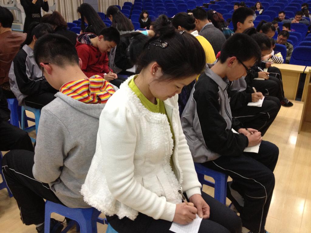 心理健康测量工作坊成员,在温州实验中学广场路校区七年级五班开展了一次关于“亲子关系与亲子沟通”活动,全班40名学生及其家长参与了此次活动。