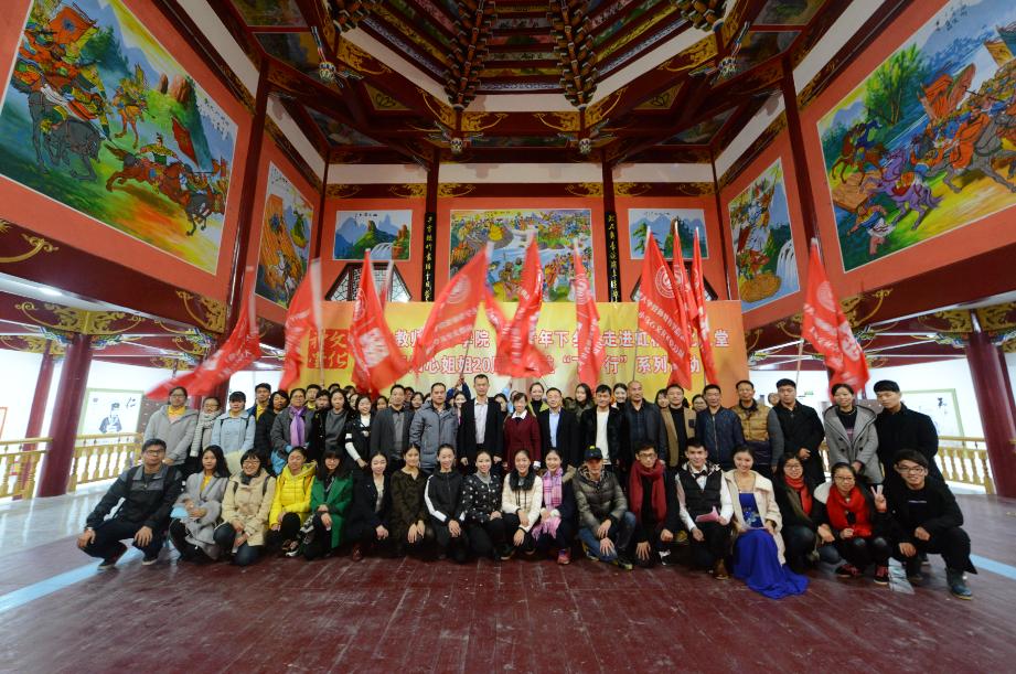 的大学生高举‘新青年下乡’的旗帜,走进虹桥文化礼堂,向虹桥镇广大人民群众学习,同群众一起纪念‘一二九’运动80周年,非常有意义”