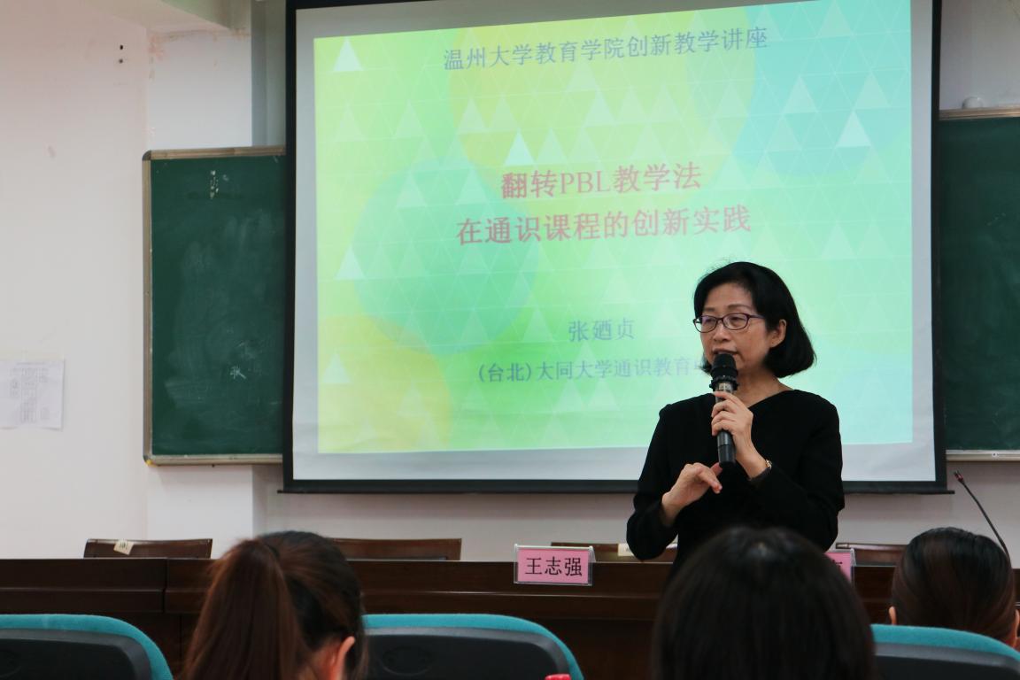 2019年9月27日下午,中国台湾地区大同大学张廼贞教授受邀莅临成人网站 作题为《翻转课堂PBL教学法在通识课程的创新实践》的讲座。本次讲座是溯初大讲堂•教学工作坊的第二讲,由成人网站 王志强副院长主持,来自成人网站 及其他学院的骨干教师和研究生参加。