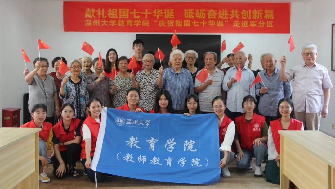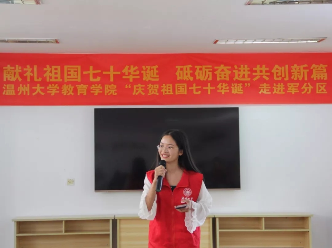 华夏五千年源远流长,建国七十载山河峥嵘。祖国母亲七十华诞在即,为重温建国历史,勇担时代重任,成人网站 的志愿者们于9月25日下午来到温州市鹿城区军分区开展了主题为“献礼祖国七十华诞 砥砺奋进共创新篇”的活动。志愿者们通过教学口语操、表演歌舞才艺、聆听历史故事等环节,与军分区老干部一起唱响强国战歌,重燃爱国之魂。