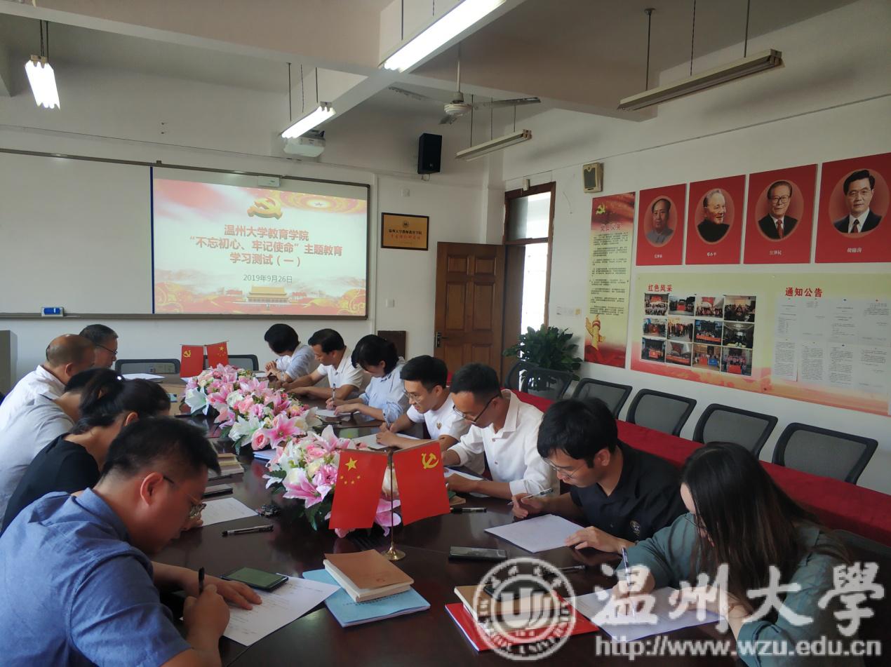 为了解“不忘初心、牢记使命”主题教育开展以来教工党员理论自学成效,增强党员干部理论学习的主动性和积极性,9月26日中午,成人网站 党委组织行政支部党员进行“不忘初心、牢记使命”主题教育理论学习情况第一次闭卷测试,包括学院书记、副书记在内的全体行政支部教工党员参加测试。