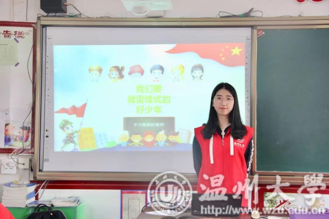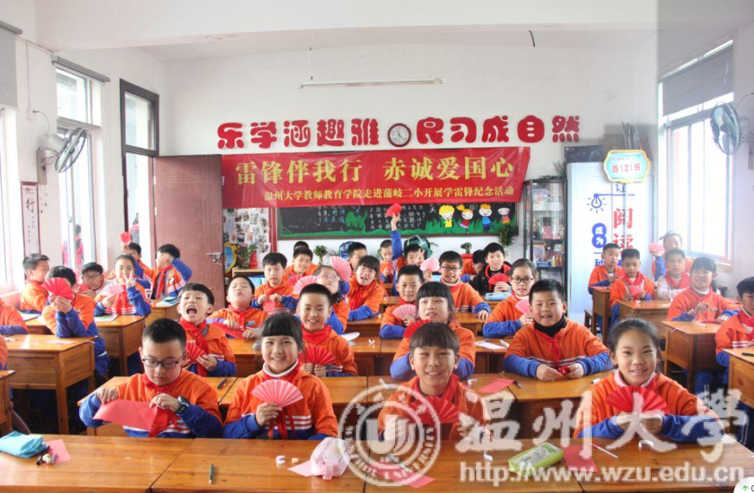 践行雷锋精神,凝聚奉献力量。以雷锋月为契机,3月20日下午,温州大学教师成人网站 的志愿者们前往乐清市蒲岐二小开展了以“雷锋伴我行,赤诚爱国心”为主题的新青年下乡活动。志愿者们通过故事宣讲、游戏互动、手工制作,将雷锋精神和两会热点相结合,引导孩子传承雷锋精神,激发他们的爱国之心和报国之志。
