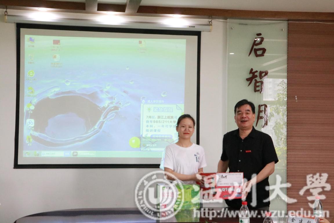 徐和昆校长作总结讲话。他表示通过此次走访慰问,实实在在感受到基础教育事业的蓬勃发展。他结合自己在大学期间的实践经历,强调暑期实践活动的重要意义。徐校长给予该实践队很高的赞赏:这支实践队有主题好、实践内容与专业结合度高、家长学校需求大、组织工作好、素质高和实践队收获大等特点。他表示从实践队员身上看到了教院学子“博·爱·雅·艺”的综合素质能力与饱满的精神面貌,实践队员很好的展示了温州大学学子的良好形象,到了未来的全科教师,为学院、学校争得名气。最后徐校长向同学们提出几点要求:出行在外,最重要的是注意人身安全;注重团队意识。要充分发挥团队的作用,在集体实践中做好协作与分工;坚定不移完成既定的目标与任务;做好总结与反思工作,将理论与实践相融,知行合一。实践队员徐同学说到,我们感受到了学校的支持与关怀,并将以更加饱满的激情投入到后期的实践活动中。