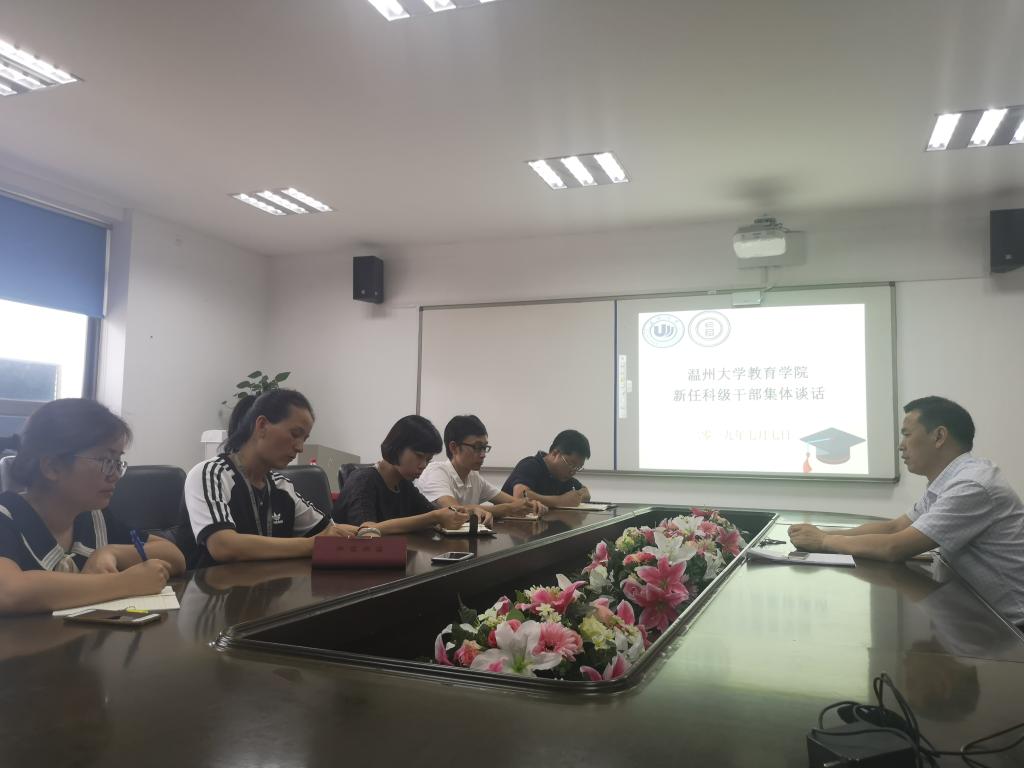 2019年7月7日下午,成人网站 新任科级干部集体谈话在成人网站 9A410会议室举行。学院党委书记何毅、学院新任科级干部参加座谈,彭小媚副书记主持。