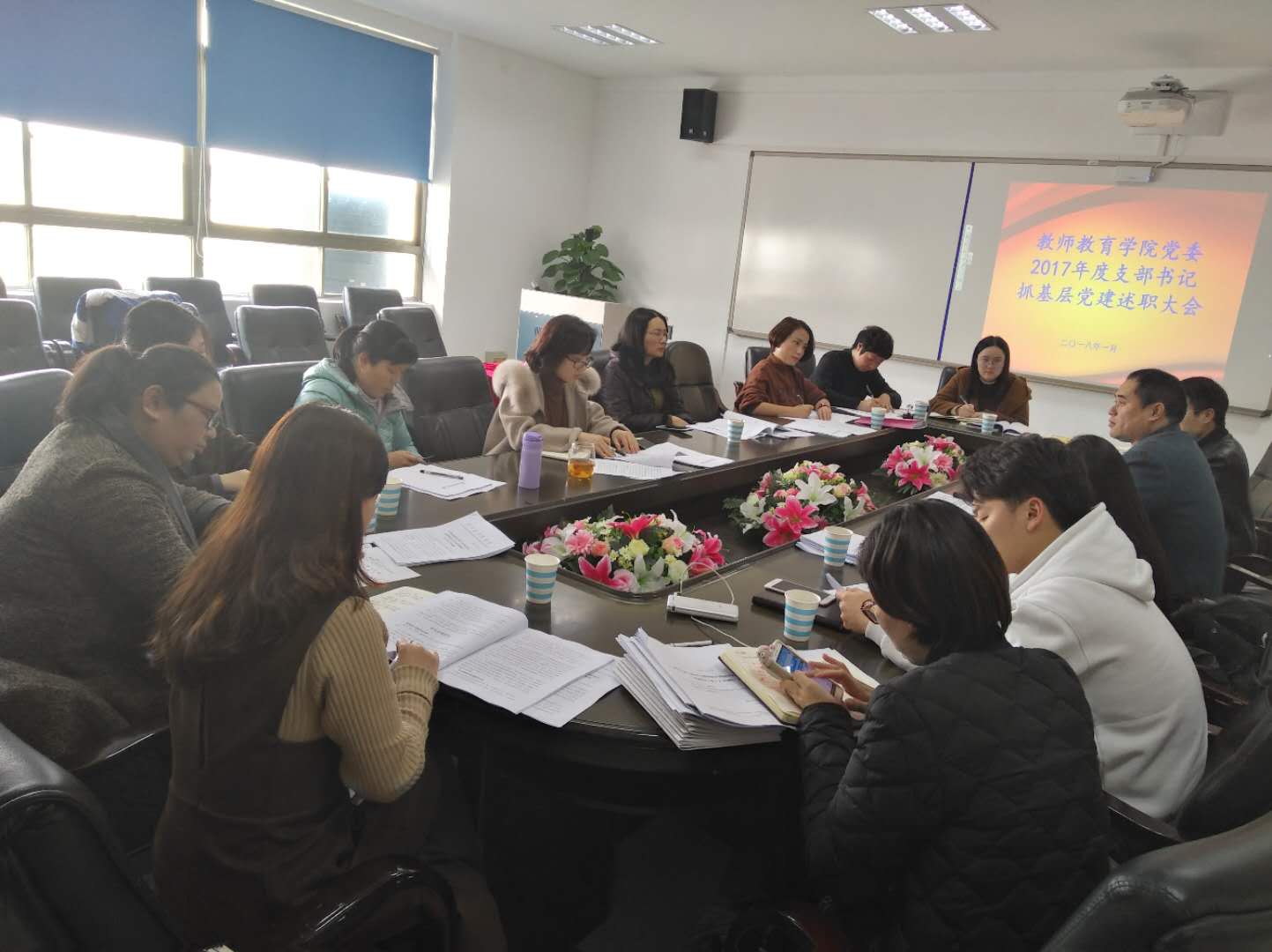 1月17日下午,成人网站 召开2017年支部书记抓基层党建述职评议大会。学院党委委员、各支部书记以及党务办公室成员参加会议。会议由杨立淮书记主持。