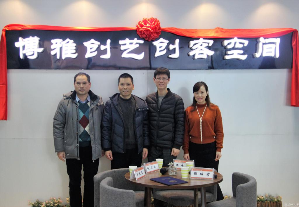 2018年1月16日下午,温州大学教师成人网站 于北校6号楼一楼举办了博雅创艺创客空间揭牌仪式暨首场创客教育沙龙,出席此次活动的有学院党委书记杨立淮、学院党委副书记杨丽君、创业学院副院长施永川老师、谢作如老师以及博雅创艺创客空间各团队指导老师、团队成员。