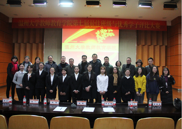 师范气质是教院的精髓、优良学风是教院之多长,卓越教师是教院的招牌。在教院这个优秀的大家庭里,不断的涌现出一批又一批的优秀班集体。2017年12月25日晚6:00,在南校雁山厅,温州大学教师成人网站 举行了2016-2017学年最佳班级评比大赛。出席此次评比大赛的评委有温州大学学生处处长张敏老师,温州大学教务处副处长胡瑜老师,温州大学溯初学区党委副书记章志图老师,温州大学团委副书记魏一老师以及温州大学化材学院党委副书记潘从义老师。另外,出席此次评比大赛的嘉宾有教师成人网站 党总支书记杨立淮老师,副书记杨丽君老师和学院各系、各科室的老师们以及各班的同学代表。