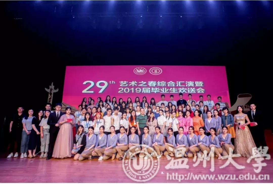 莫道秋江离别难,舟船明日是长安。2019年6月12日晚,温州大学教师成人网站 第29届艺术之春综合汇演暨2019届毕业生欢送会于育英大礼堂正式拉开帷幕。出席晚会的嘉宾有温州大学溯初学区党委副书记章志图、温州大学教师成人网站 院长孙芙蓉、党委书记杨立淮、党委副书记杨丽君,温州市中等幼儿师范学校团委书记王帆老师、温州市职业中等专业学校江南老师。