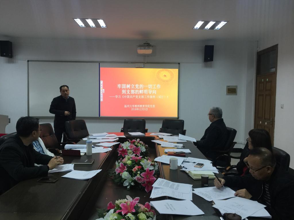 12月5日,成人网站 在9A410召开党委会、党政联席会议专题学习《中国共产党支部工作条例(试行)》,学院全体领导班子参加,杨立淮书记做《牢固树立党的一切工作到支部的鲜明导向》专题讲座。