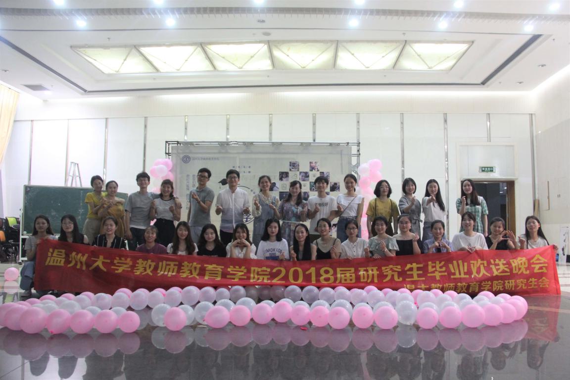 栀子花开日,一年毕业时。2018年5月30日晚六点半,温州大学教师成人网站 2018届研究生毕业生欢送会于大学生活动中心A座301室召开。出席本次欢送会的嘉宾有学院党委副书记杨丽君老师、学生科吴超智老师以及潘士杰老师。