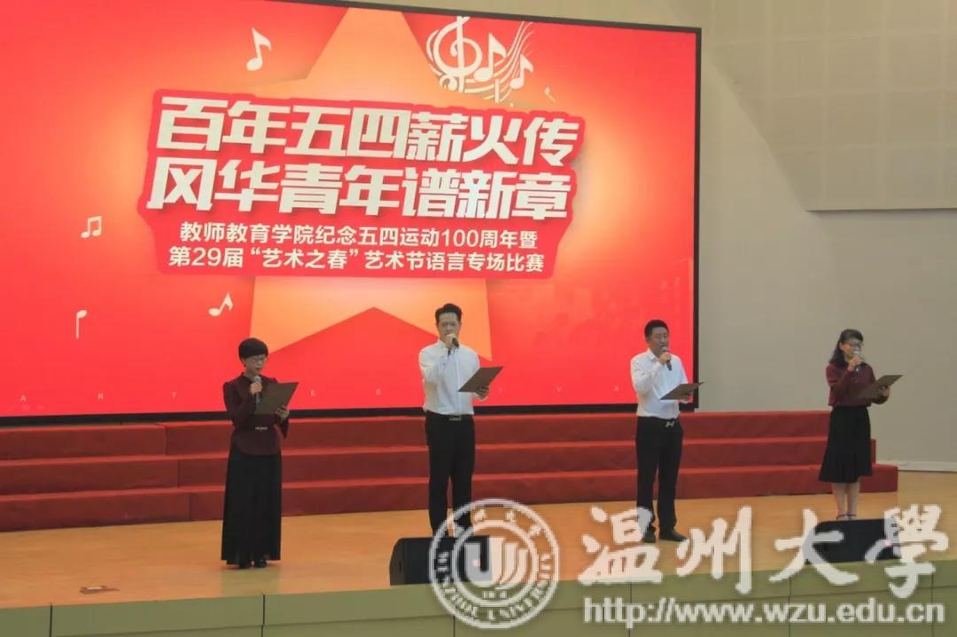 杨立淮书记指出,五四运动是我国近现代史上具有里程碑意义的重大事件,诞生了以“爱国、进步、民主、科学”为核心的“五四精神”,本次艺术之春语言专场的节目无不展现教院青年学生的“五四风貌”。