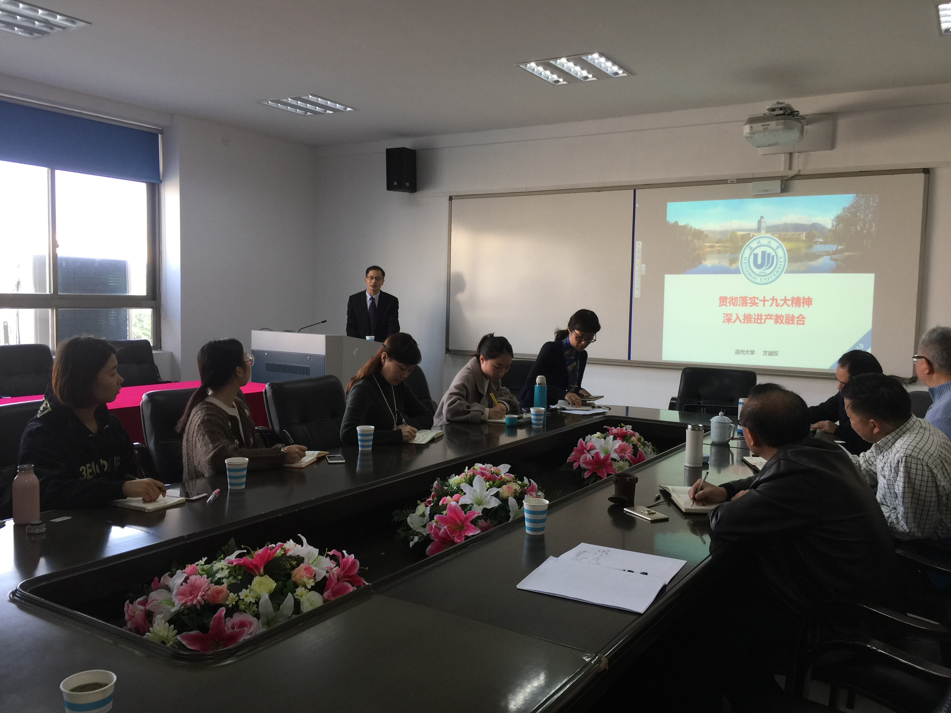 方校长本次报告主题是《贯彻落实十九大精神 深入推进产教融合》。他指出,在党的十九大报告中,习总书记提到了科教兴国战略、人才强国战略、创新驱动发展战略、乡村振兴战略、区域协调发展战略、可持续发展战略、军民融合发展战略等七大战略,这些发展战略都离不开高素质应用型人才的支撑。我们温州大学未来的发展目标是要成为中国一流应用型大学,要培养高素质应用型人才,主要依靠三大支柱:国家产教融合示范高校、中国一流创新创业大学、世界“一带一路”国际名校。我们温州大学人才培养目标是符合区域社会经济发展的具有创新精神、创业能力和社会责任感的高素质应用型人才。方校长对学院发展提出了自己的见解。他强调,党的十九大特别指出,要优先发展教育事业,浙江省委在推进“两个高水平”建设的决定中也明确要求优先发展教育,作为温州大学特别是教师成人网站