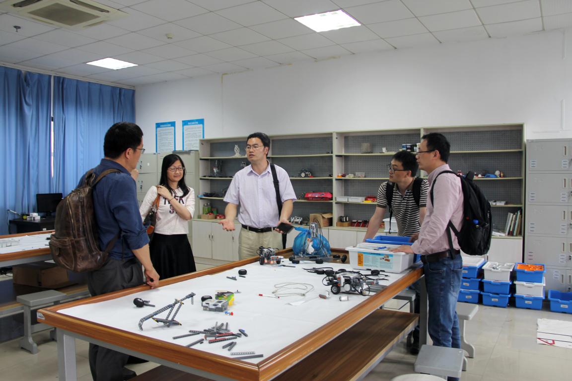 在交流完之后,王永固副院长一行还参观了成人网站 实验中心、温大创客空间,实验中心主任李小志、副主任杨健以及张新立、叶爱敏老师热情接待了来访客人。王永固副院长一行主要参观了虚拟实验室、学生工作坊实验室、教育机器人创客空间、温大创客空间等实验室,他们对实验中心宽敞的场地、先进的仪器设备、丰硕的教研成果予以很高的评价,同时,双方就师范类实训实验室的建设情况进行了深度交流与探讨。