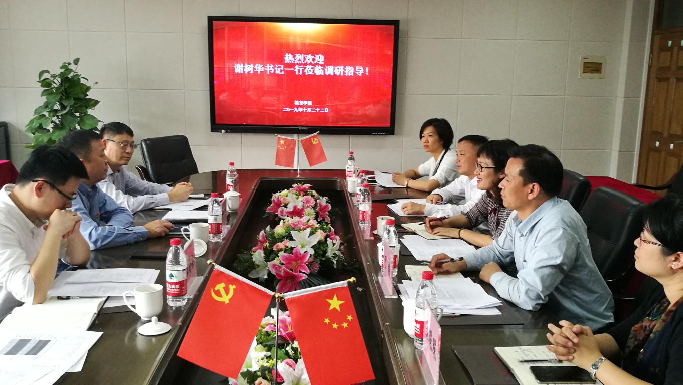 2019年10月22日下午,校党委书记谢树华、校办主任蔡联群、校办督办科科长陈赞安一行来成人网站 开展申博工作调研。学院院长孙芙蓉、党委书记何毅、副院长叶新东、王志强、林琛琛、党委副书记彭小媚参加了此次会议。