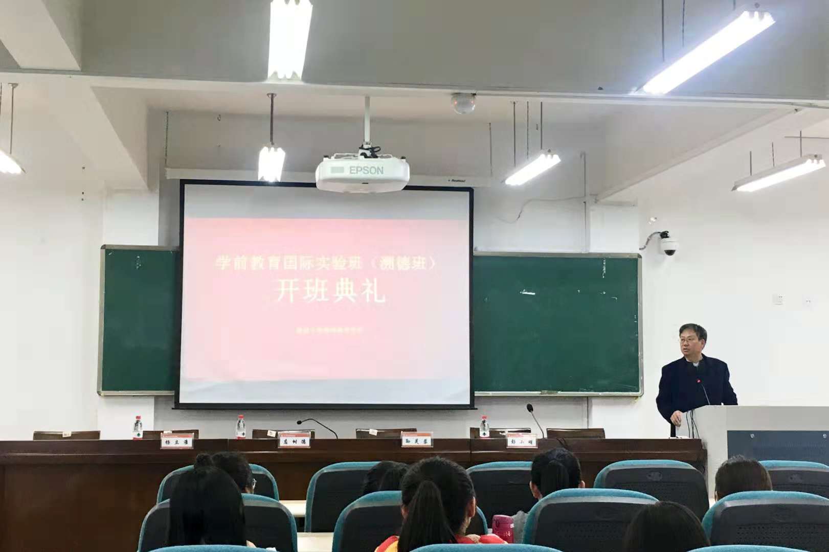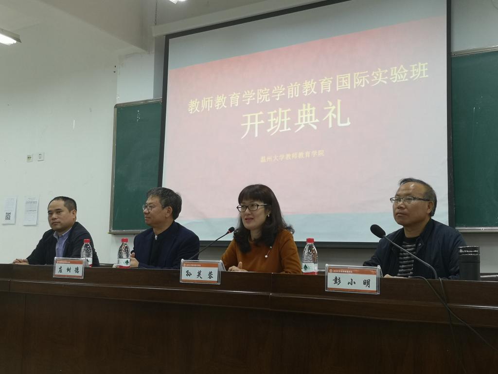 2018年11月14日下午,温州大学教师成人网站 举行第一期“学前教育国际实验班”开班仪式。教师成人网站 各级领导、学前教育系负责人以及温州大学产教融城战略研究院的应树德顾问及全体第一期学员与会。