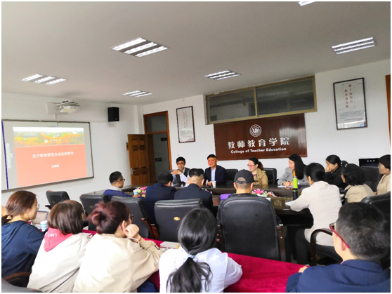 2019年4月10日下午2:00,温州大学教师成人网站 老师和研究生在9A410会议室聆听了由华中师范大学成人网站 王坤庆教授主讲的《关于教育研究方法论思考》专题讲座。此次会议由成人网站 折延东教授主持。