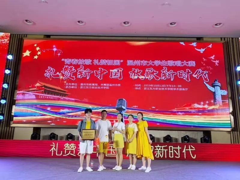 青春为祖国歌唱,奋斗为梦想加油。新中国成立70 周年之际,由温州市教育局,共青团温州市委主办,浙江东方职业技术学校承办的“青春放歌,礼赞祖国”温州市大学生歌唱比赛如期举行。成人网站 学子周斌杰、卢家俊、陈雨晨、陈诺、张瑾以一首《青春花开美乡村》夺得一等奖中的第一名。