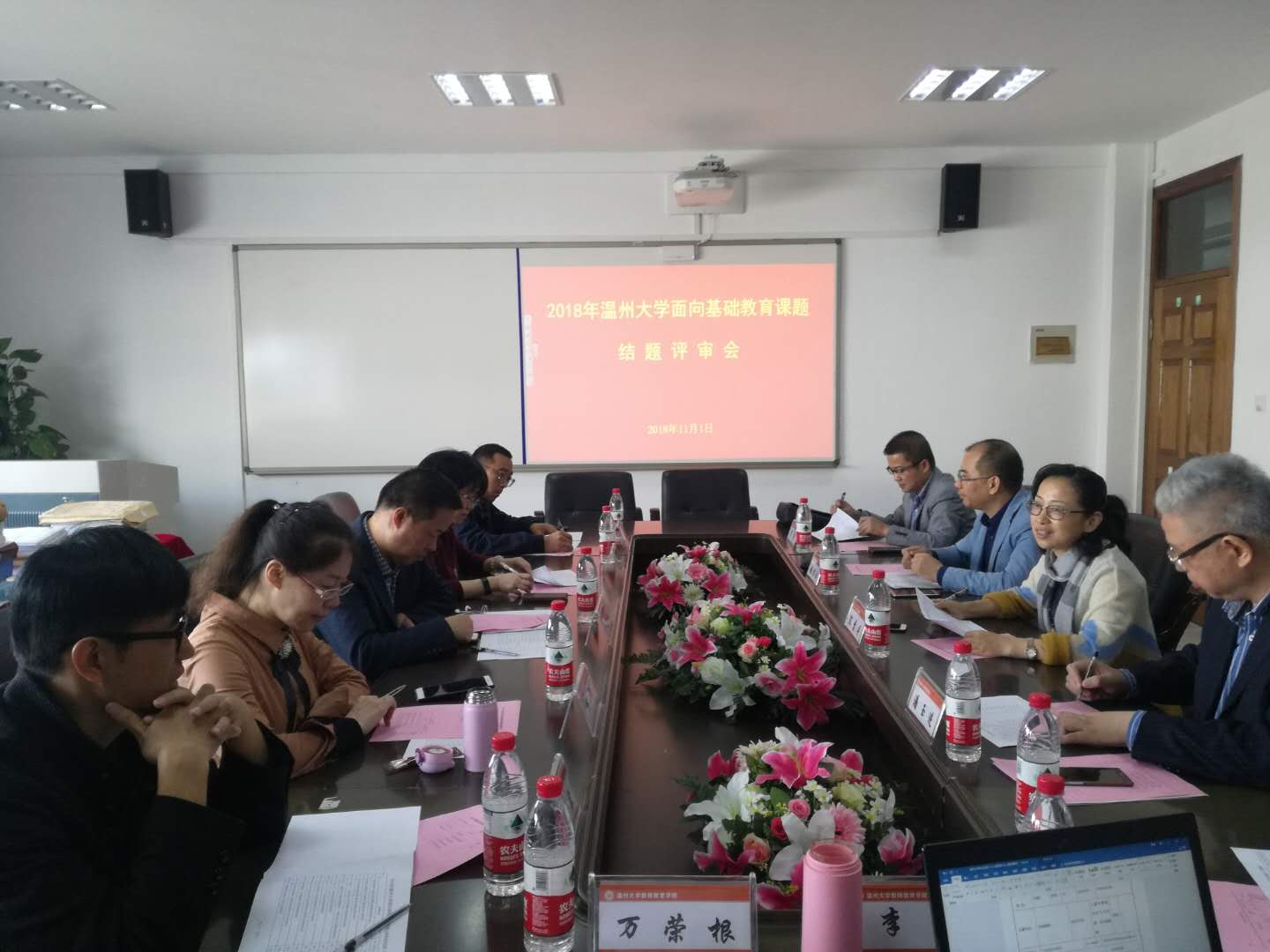 11月1日上午,2018年温州大学面向基础教育课题验收评审会在温州市茶山高教园区温州大学南校区9号楼(教育楼)A410会议室胜利召开。评审会由温州大学面向基础教育课题项目负责人、温州大学教师成人网站 副院长潘玉进教授主持。