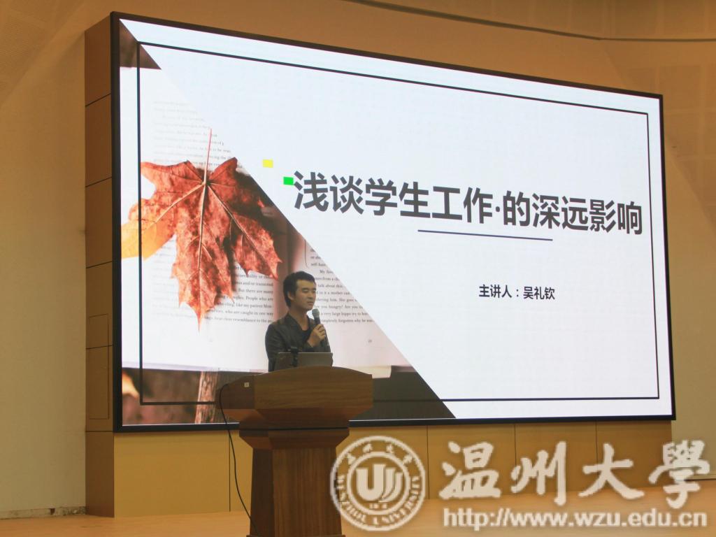 为进一步提高团学成员综合素养,2018年10月28日,温州大学教师成人网站 团员骨干培训之“艺”讲座于九号楼报告厅举行。