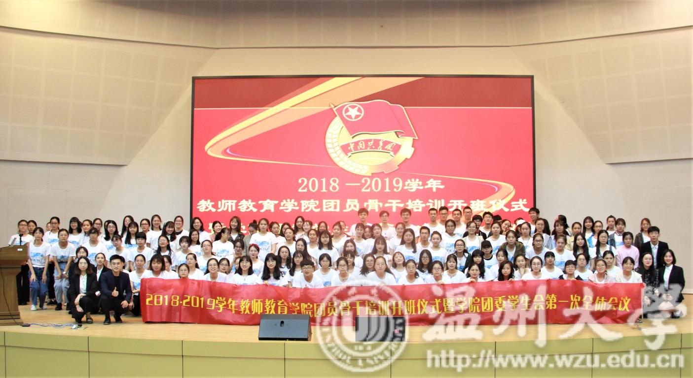 为促进团学凝聚力的提升,增强团学成员的团员意识,2018年10月19日晚六点半,温州大学教师成人网站 团员骨干培训开班仪式暨学院团委学生会第一次会议于九号楼报告厅正式举行。出席本次会议的有温州大学首席心理师张海音副教授、学生科辅导员吴超智老师、潘士杰老师及学生会全体成员。