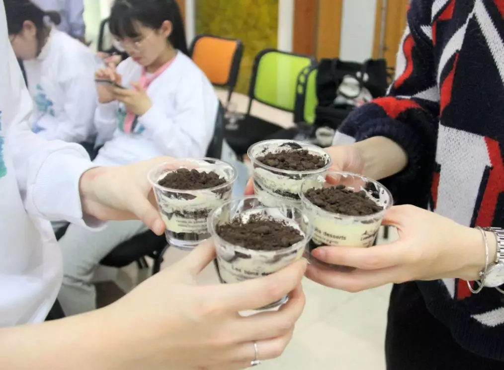 在这次团建活动中,超智老师与同学们一起动手制作蛋挞和木糠杯。在活动接近尾声时,她同大家说道:“感谢所有团学成员们的辛勤付出,这一学期我看到了大家的努力。每一次的相聚都是珍贵的,每一次的付出都值得肯定,虽然这次的团建活动即将结束,而我们的奋斗之路还将继续,期待18年的教院团学能够越来越好!”