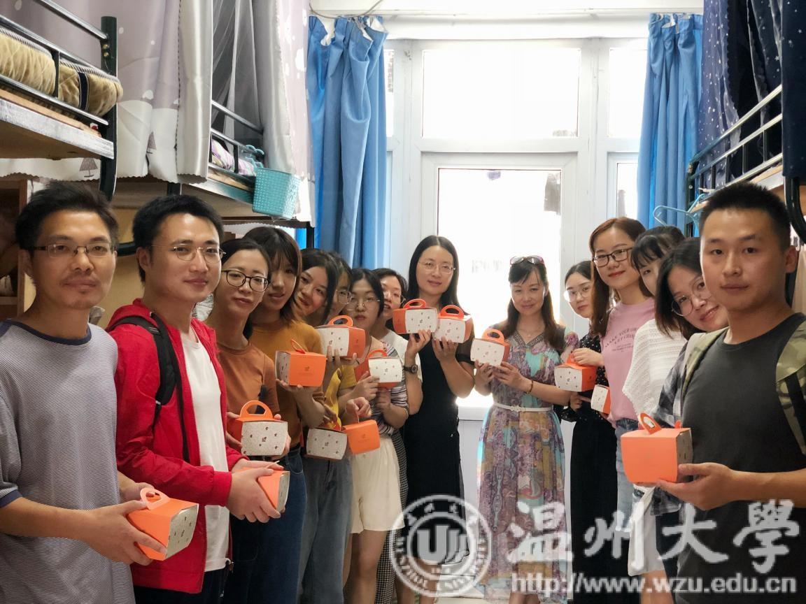 活动期间,三位老师走访了部分研究生宿舍,亲自将带有浓浓情意的月饼礼盒送到学生手中,并表达了节日祝福,教院党委副书记杨丽君老师首先代表学院对研究生学子致以节日问候,丽君副书记说,“每逢佳节倍思亲,尤其是一年级的研究生们,今年的中秋节是同学们来到教院大家庭度过的第一个节日,希望你们感受到学院的温暖,度过一个愉快的中秋佳节”。周老师与万老师也与研究生们亲切交谈,询问他们的生活、学习情况,鼓励同学之间多多交流,积极参加校园活动,认真把握研究生读书生涯。活动过程中老师和同学们相谈甚欢,其乐融融,场面十分温馨。研究生们对学院领导的慰问深表感动,中秋节虽不能和家人团聚,但是教院的老师、同学就像家人一样,让他们感受到温暖。