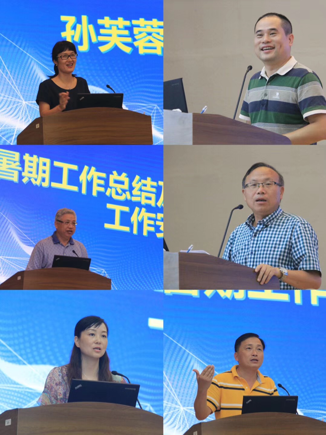 潘玉进副院长、彭小明副院长、杨丽君副书记、叶新东副院长等学院领导就其分管工作做暑期总结,并部署新学期任务安排。他们分别总结暑期教育硕士专项评估、教育硕士联合培养基地建设、师范专业认证、暑期社会实践、百名教授进百家、就业、环境改造、国家虚拟仿真实验教学项目建设、学科建设等方面的工作成效,指出新学期重点工作是要进一步做好学院党建、教育硕士评估和总结整改、教学质量工程提升、师范专业认证、科研建设、学科竞赛、教风学风等工作。