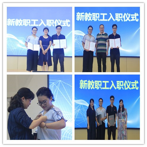 学院举行了新教师入职仪式,近期学院新进李娟、何奔奔二名教职工。杨立淮书记向全院教职工介绍新教职工的基本情况后,孙芙蓉院长、杨立淮书记向新教师送上了入职纪念证书、校情院情介绍、学校教师职业规范要求资料及联络服务卡等,新老师签订师德承诺书,承诺要依法从教,严守师德规范,做“四有”好老师。新老师所在系(科室)的各位领导为他们佩戴上“温州大学”鲜红的校徽,以此表达学院对新老师们的热烈欢迎,希望他们在温州大学严守师德规范,教书育人,安居乐业,与学院师生一起共创美好明天。