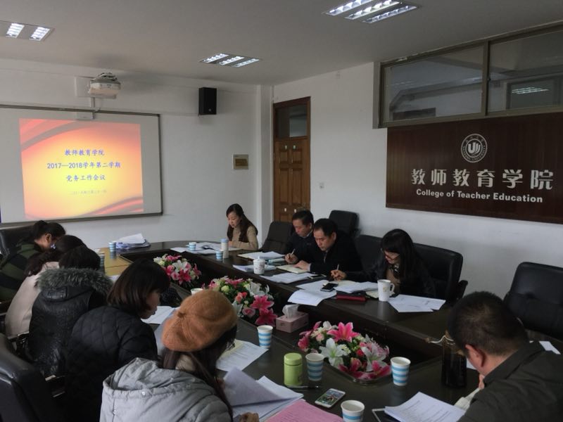 3月21日下午,成人网站 党委在南校区9A410会议室召开2017-2018学年第二学期党务工作会议,学院党委成员、各支部书记、学院党务办公室成员及工会主席参加了本次会议。会议由杨立淮书记主持。