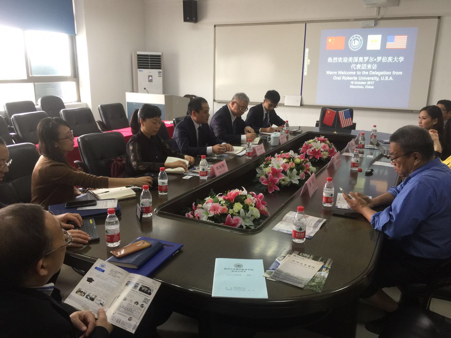 2017年10月16日,美国奥罗尔·罗伯茨大学(ORU)代表团,在瑞德-马蒂娜丝·凯思琳女士(ORU首席副校长兼总教务长)带领下,来到成人网站 进行深入洽谈。校外事处处长严晓鹏、副处长熊勇,学院党总支书记杨立淮、副院长潘玉进,学前教育系书记陈旭微、副主任杨婧以及相关人员参与了此次洽谈会。