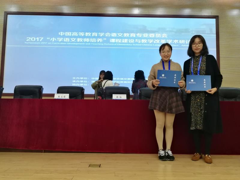 此次会议重在讨论师范生师资培养等问题,为小学语文专业化发展助力。我专业教师应邀参加此次会议。在会议进行过程中,第六届全国高师高职小学教育专业师范生语文教学展示比赛也如火如荼地进行着。全国65所学校的近140名师范生参与的盛会里,我校学生披荆斩棘,温州大学教师成人网站 小教系14级1班的舒思思和14级2班的王诗雨分别斩获特等奖和一等奖。