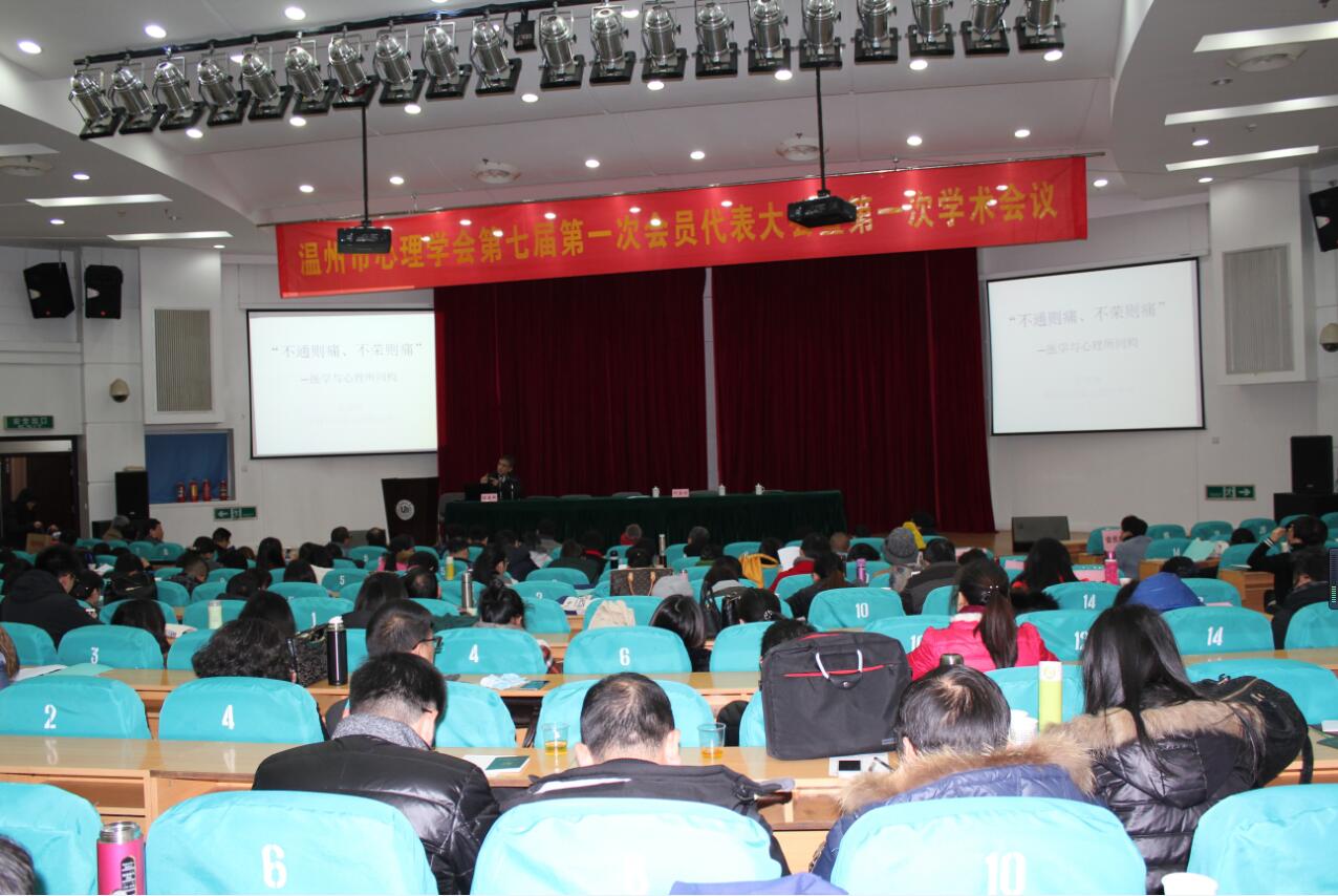 2016年1月24日,正值温州寒流的第一天,呼啸的冷风席卷而来,然而零下7摄氏度的严寒没有阻挡我们的热情,温州市心理学界的同仁们齐聚温州大学继续教育大楼报告厅,出席温州市心理学会第七届第一次会员代表大会暨第一次学术年会。温州市心理学会成立于1999年,是温州市心理学工作者依法登记、自愿组成的、具有公益性、学术性的法人社会团体,是温州市科学技术协会的组成部分,是集教育、临床医学、社会工作等各领域心理学专家于一体的人才资源库,是发展温州市心理科学事业的重要社会力量。此次代表大会的召开是温州市心理学界的一件大事,更是温州市心理学会发展史上的一个盛典。